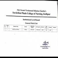 Shri Swami Vivekanand Shikshan Sanstha's Savitribai Phule College of Nursing has started their admission in B. Sc Nursing, GNM i.e. General Nursing & Midwifes, ANM (Auxillary Nursing & Midwifes) courses. Intrested individuals should visit the official website of the desired college, review eligibility criteria and follow the admission process which usually includes filling out an application form & paying fees.